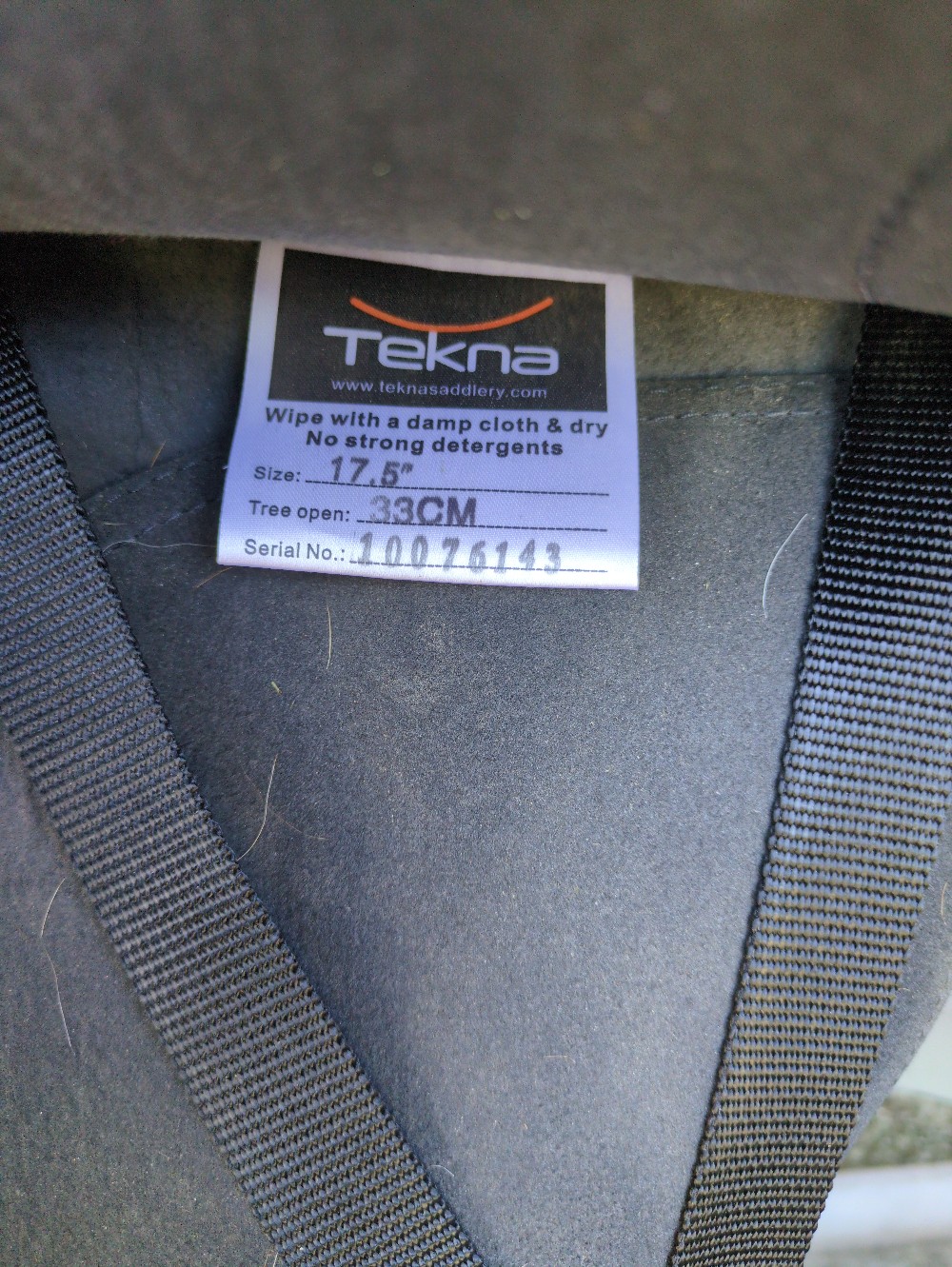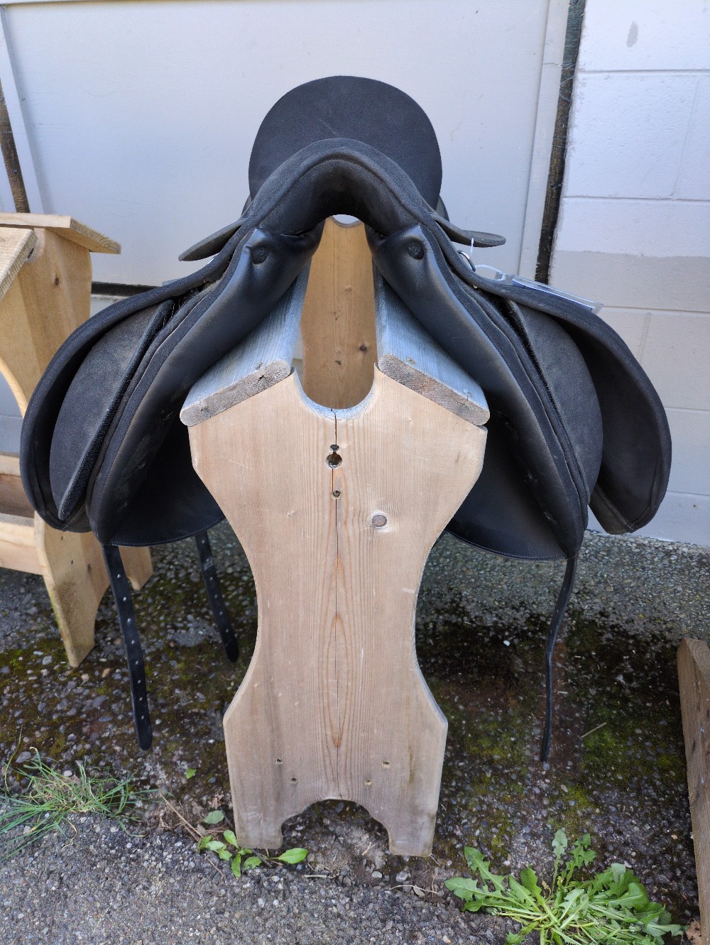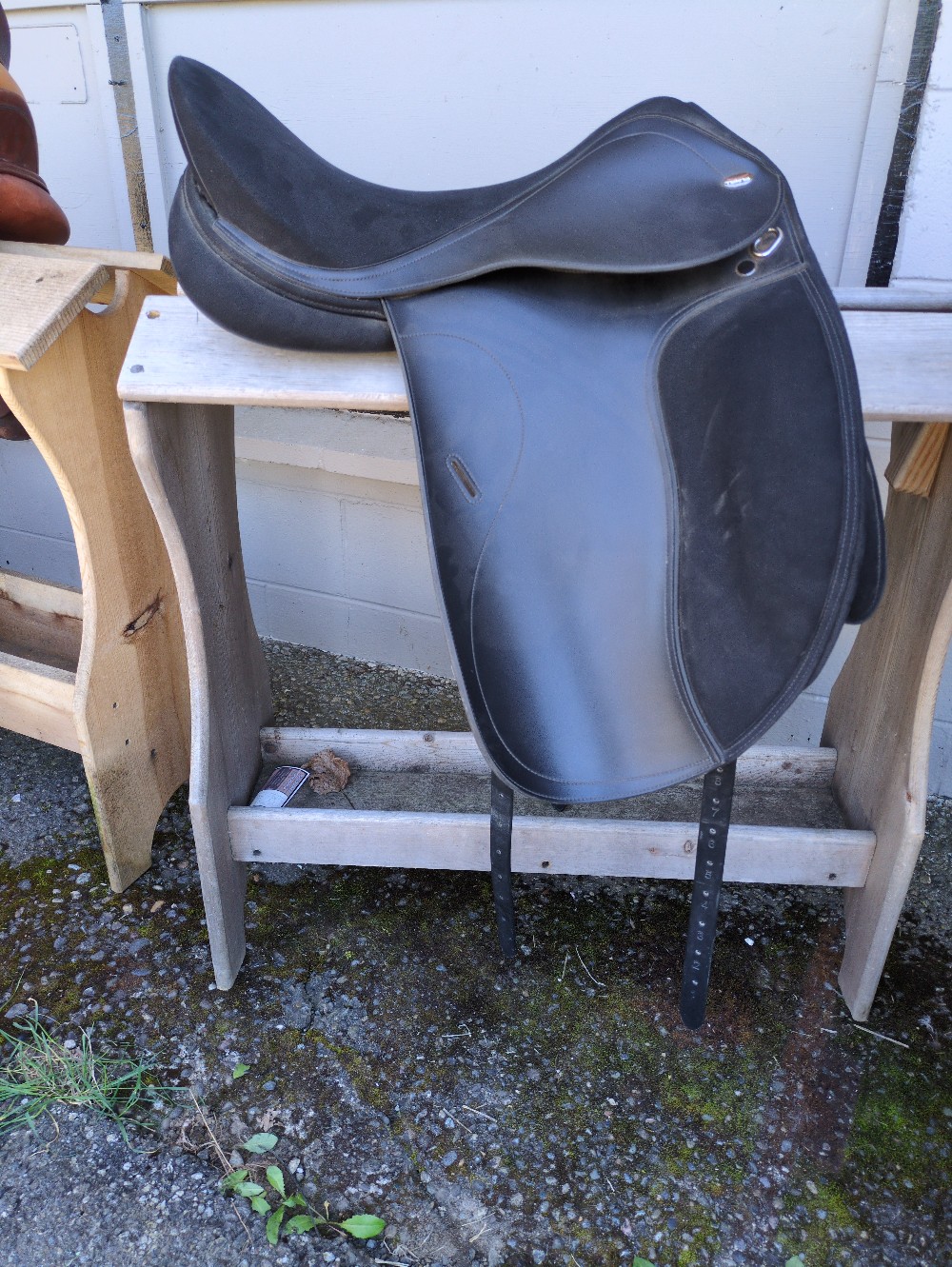 17 and 1/2 in 33 cm tekna synthetic dressage saddle. Great for rainy weather! Need a training saddle? Or a starter? Here you go.