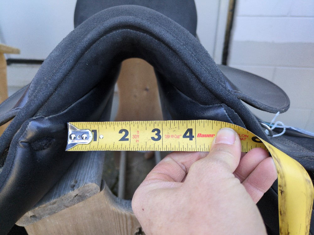 Med wide, Please see pictures for condition and comparison measurements and for free to ask questions. 3-day trial from date of purchase available with in-person pickup. Sales final on shipped saddles.