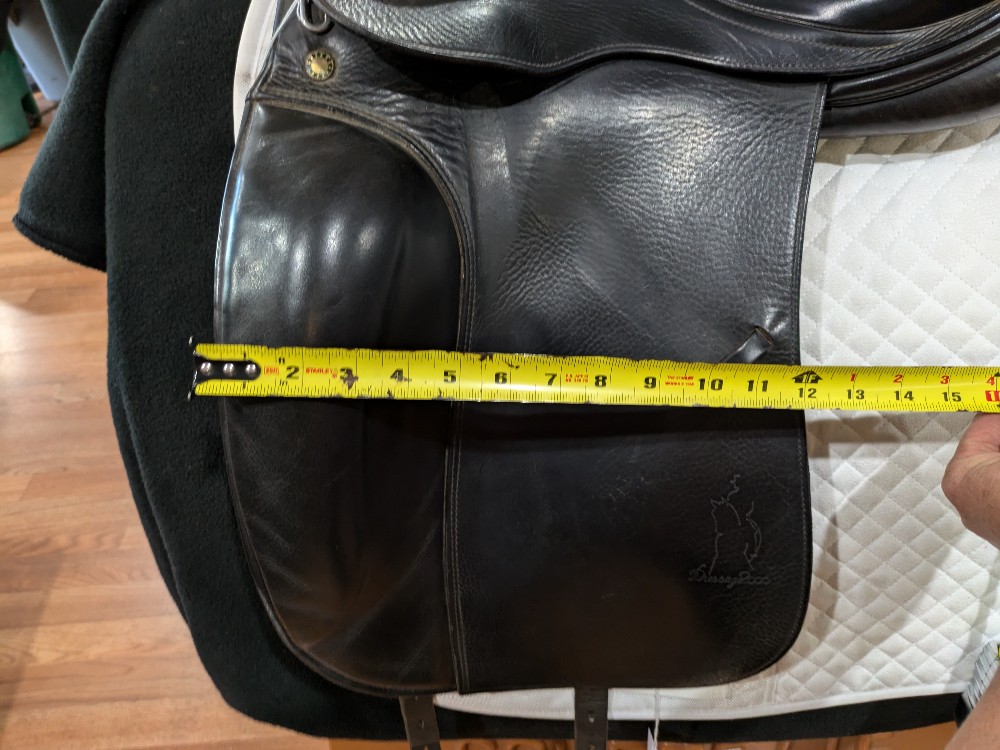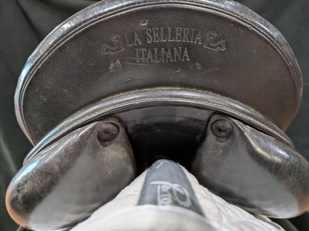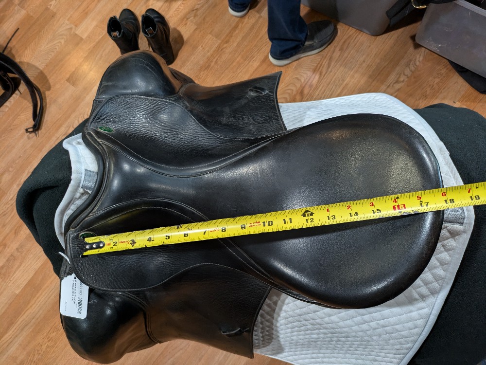 Sale $899, Was $999Nice Prestige La Selleria Italiana 18" Dressage saddle med tree, wool flocked. Features medium depth seat and large knee blocks, point billet.