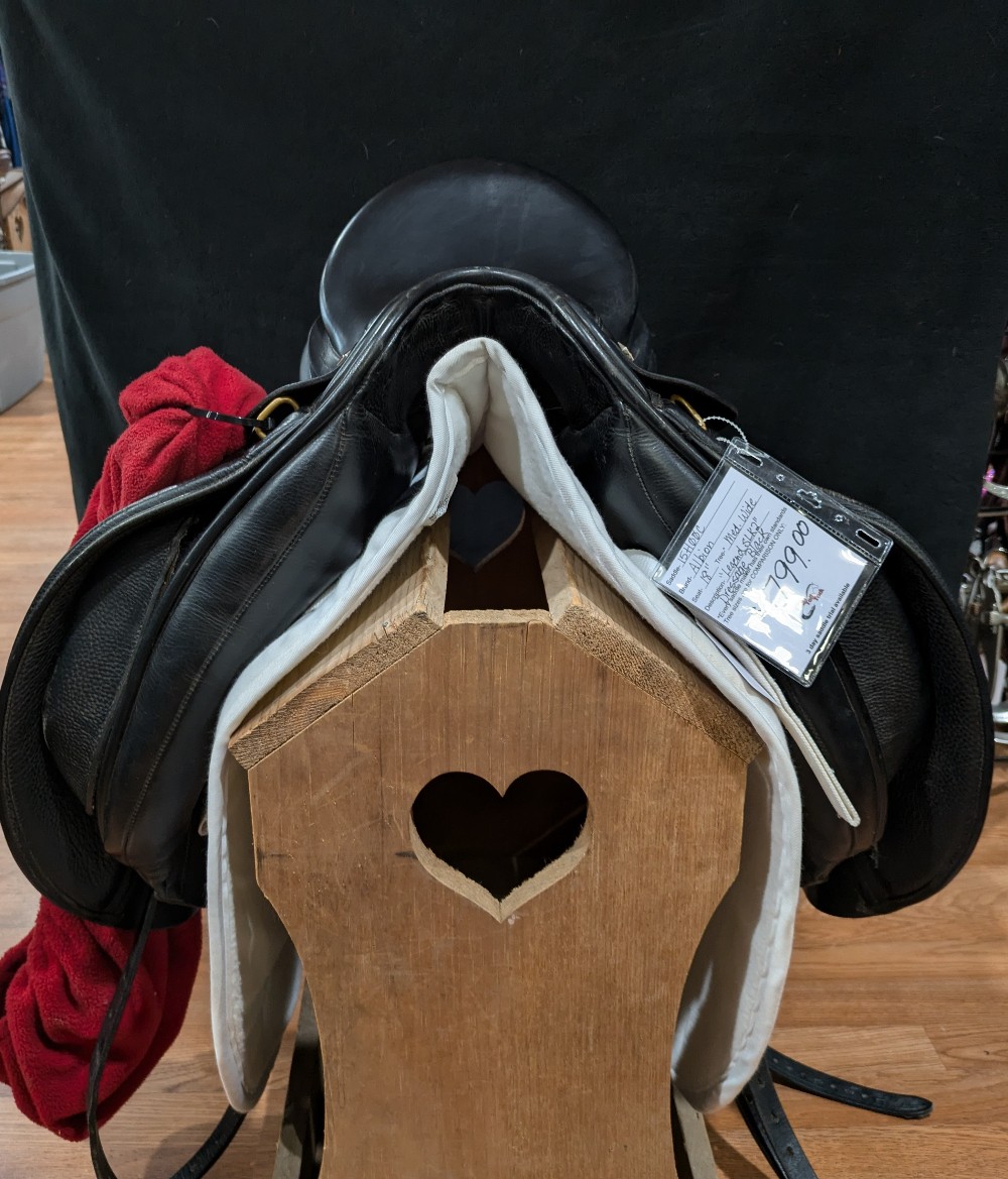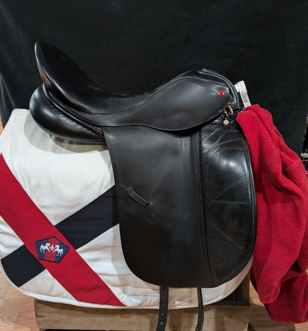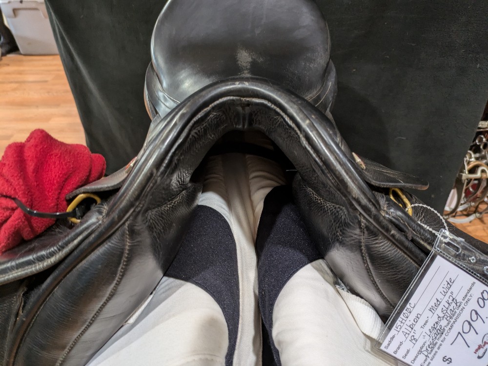 18" Albion Legend SLK dressage, medium wide tree. (Pad sold separately) This saddle has been nicely maintained. Wool was replaced and new billets added in 2022 and and only has a handful of rides since! The quality Albion leather Is well conditioned, and shows wear appropriate for a pre-loved saddle.  Take a look at the pictures for the condition and comparison measurements for your info, and feel free to ask questions. Or, come see in person! This is solid, quality saddle with an attractive price tag!