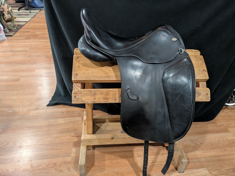 Well used 18" 34 cm Duett dressage saddle. High miles, would benefit from new wool and billets. Serviceable as is, tree responds appropriately, leather condition is ok, but shows its level of use. Please see pictures for condition and comparison measurements and feel free to ask questions prior to purchase. Great quality in a well-loved saddle; priced to sell, and leave room for upgrades. Many more miles left, need a spare, or starter? Take a look.
