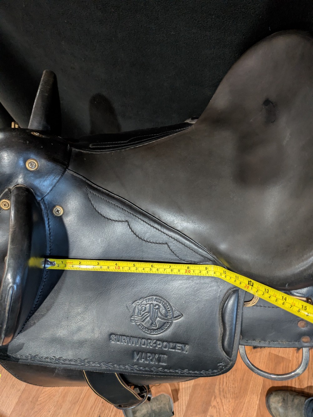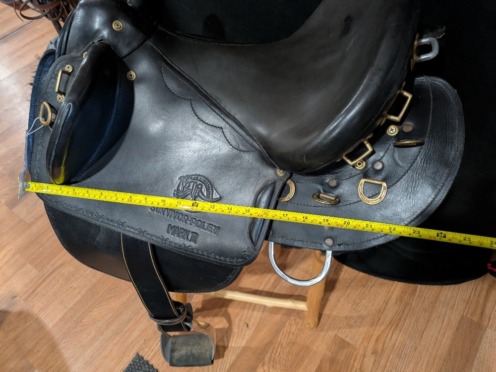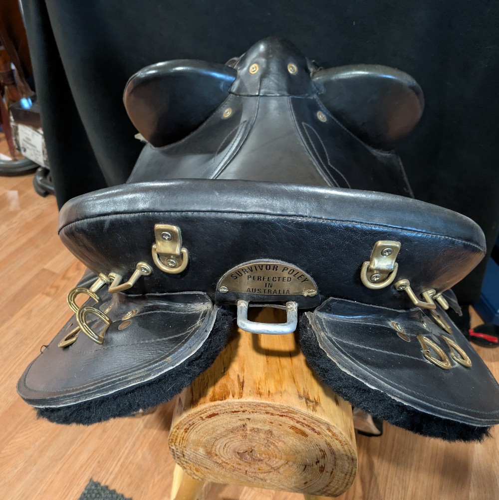 Sale $699! Great, gently used condition. Australian Stock Saddle Co Survivor Mark II Poley saddle. 18" as measured like an Aussie saddle, fits approx like 16" ish western. Med tree estimated, please see pictures for condition and comparison measurements and feel free to ask questions prior to purchase. More photos available.