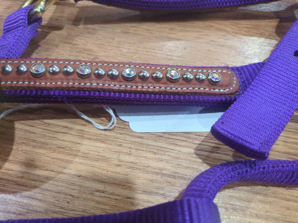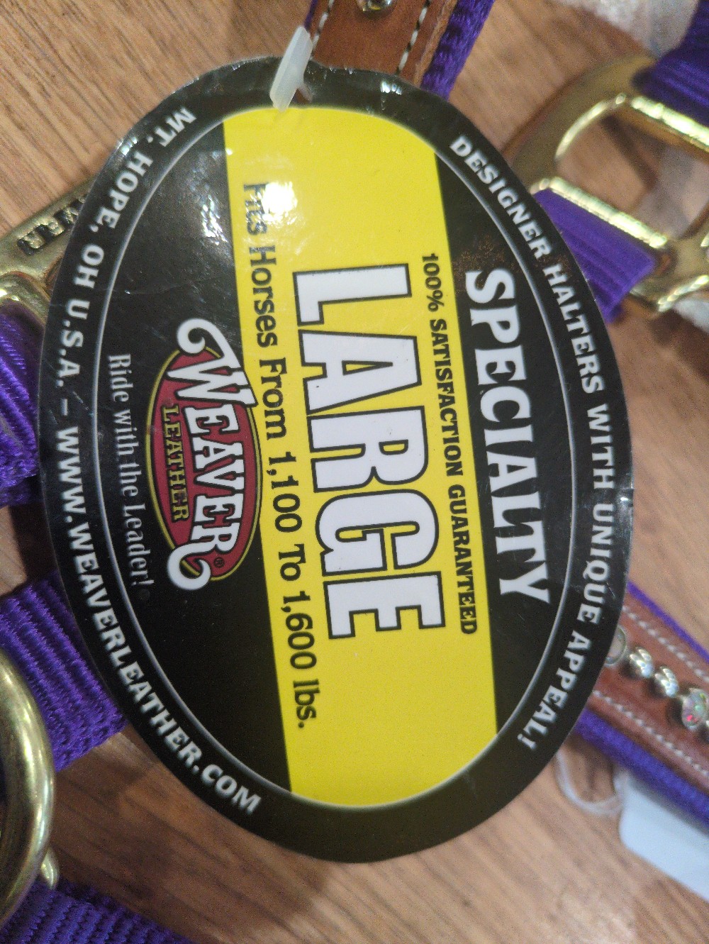 New with tags weaver web halters with leather overlay and crystals. Large Purple please see pictures and feel free to ask questions prior to purchase. Sales final on consignment items.
