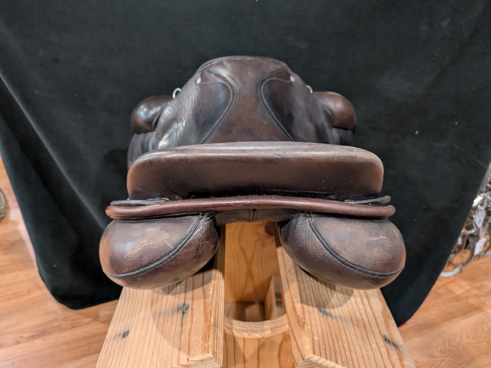 Older Schleese eventer. 18.5* forward flap, X wide tree, Tree responds appropriately, billets are used, but serviceable, billet webbing is used. Pictures and comparison measurements included for your info, please feel free to ask questions. . This saddle has been used by owner in many different breeds, from draft crosses to stock horses. Made for security over fences or flat, with super supportive knee and thigh blocks and semi deep seat.