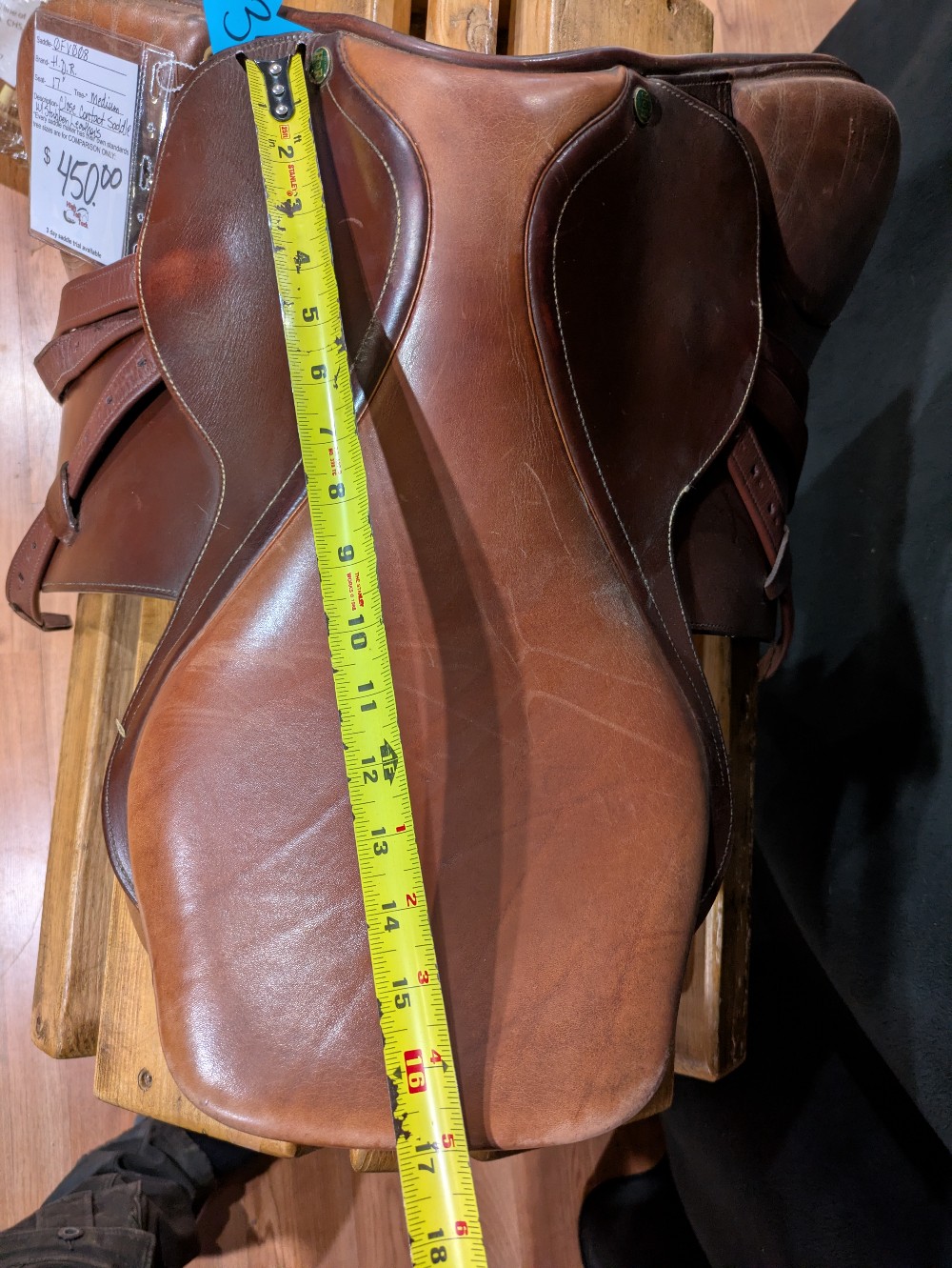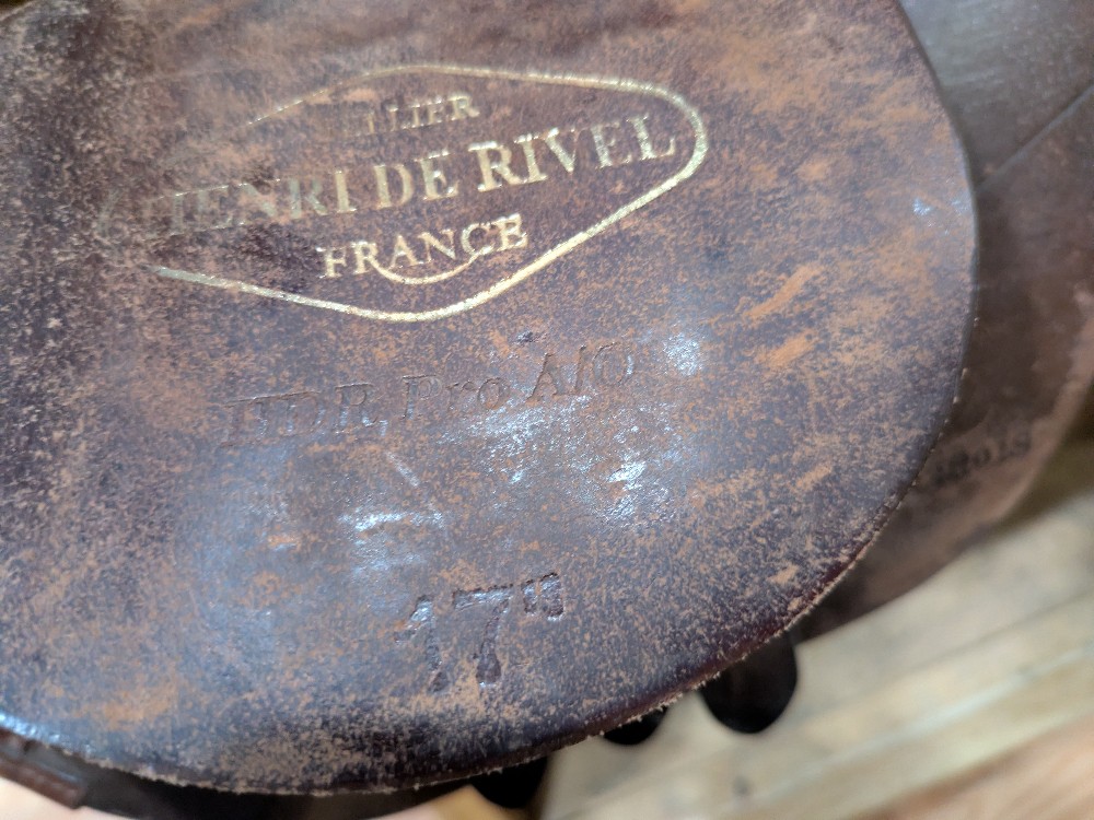 Cute used Henri de Rivel jump saddle with Stubben leathers. 17" Medium tree, foam panels. Good used condition, though it does show cosmetic scuffs from use. Please see pictures for condition and comparison measurements and feel free to ask questions prior to purchase.