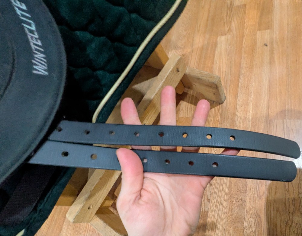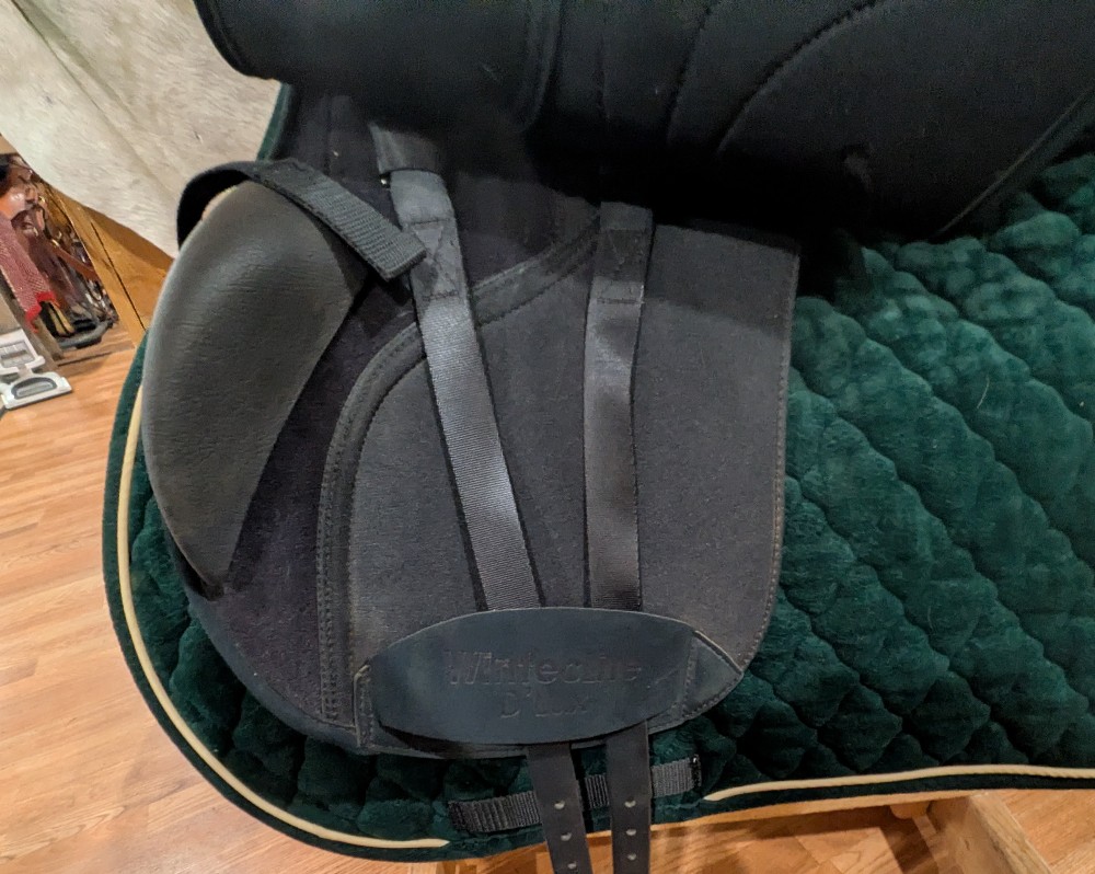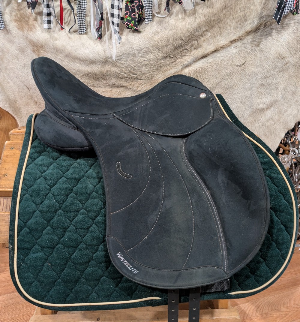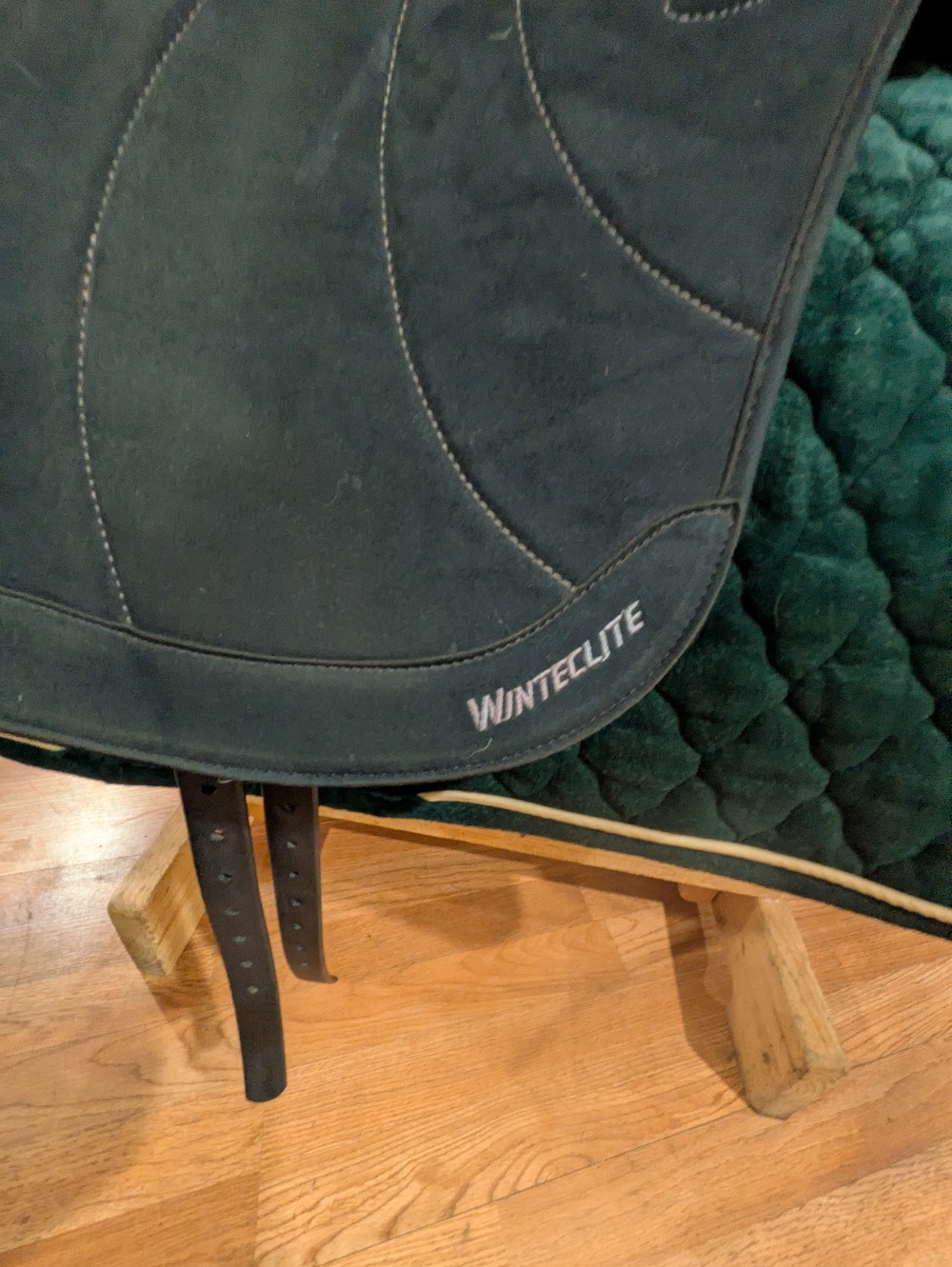 Excellent near new condition on this young Wintec Lite d'lux PONY all purpose saddle. Grippy equisoft material, short panel length for little horses or ponies, ez change gullet with original, med gullet installed. The owner purchased it a year ago, and only used it twice. Gullet plate removed for safety check, all observable parts inspected to be intact. Please see pictures for condition and comparison measurements.amd feel free to ask questions prior to purchase. Save over half the price of new on a barely used consignment. :)