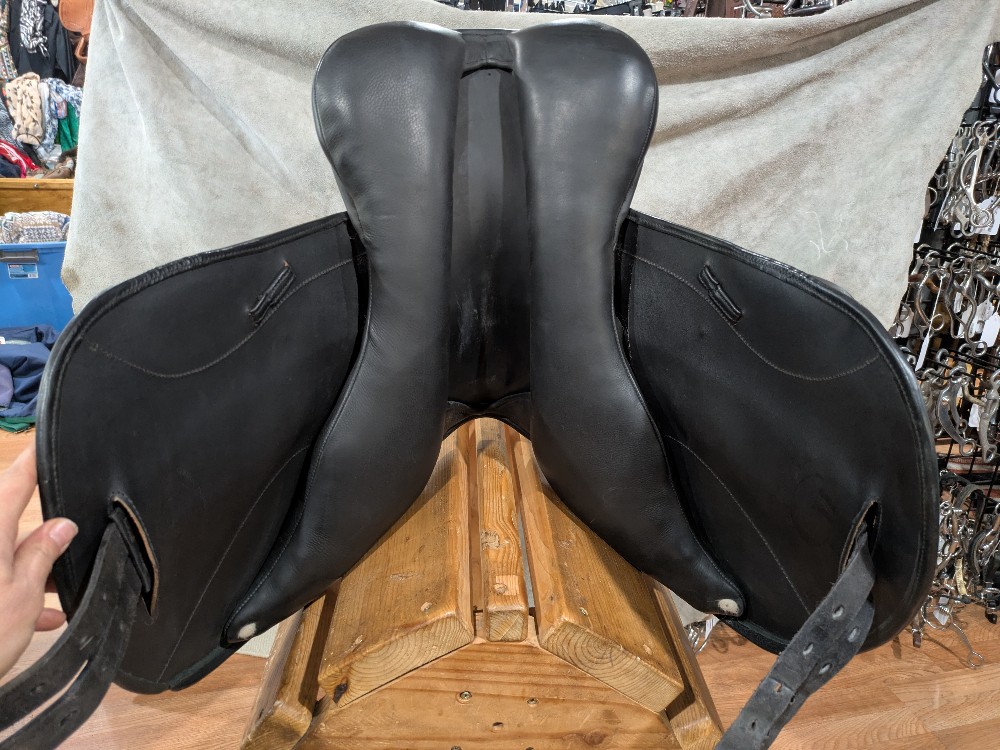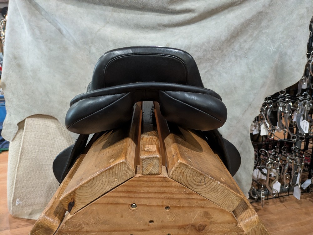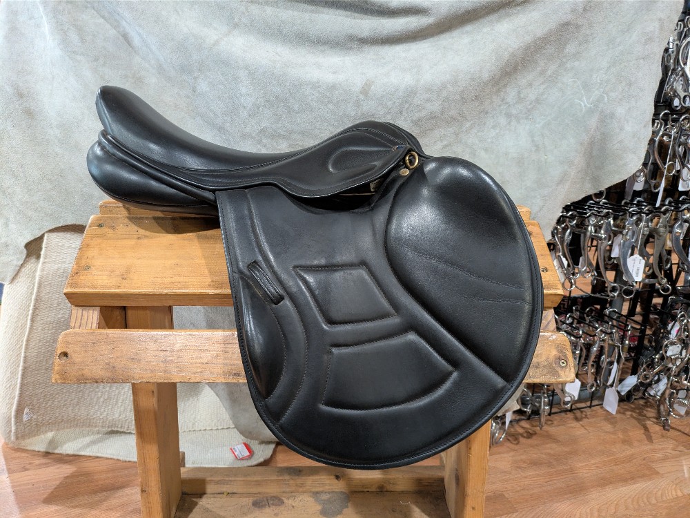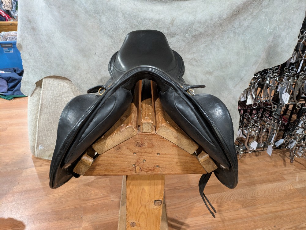 Beautiful π Wide saddle by Chunky Monkey Saddlery in England . 17.5" wide tree, Eventer with nice wide/flat panels for barrel shaped horses! Moderate depth seat and supportive seat, forward flap and knee block for the rider. Come take a look!