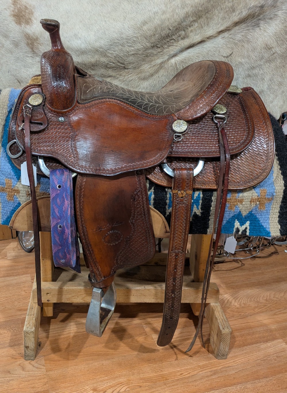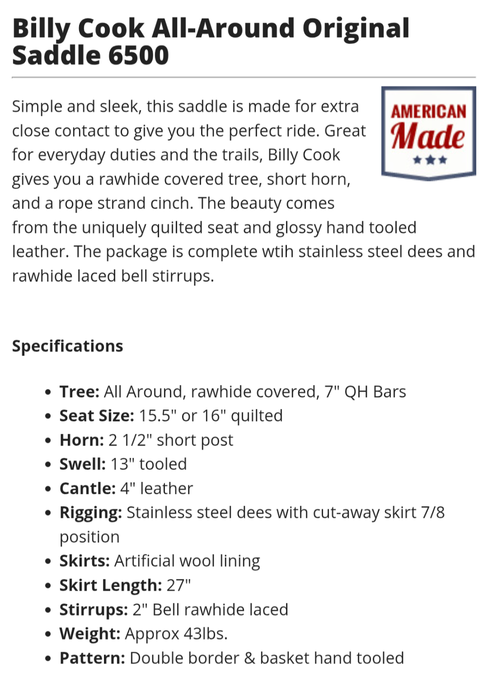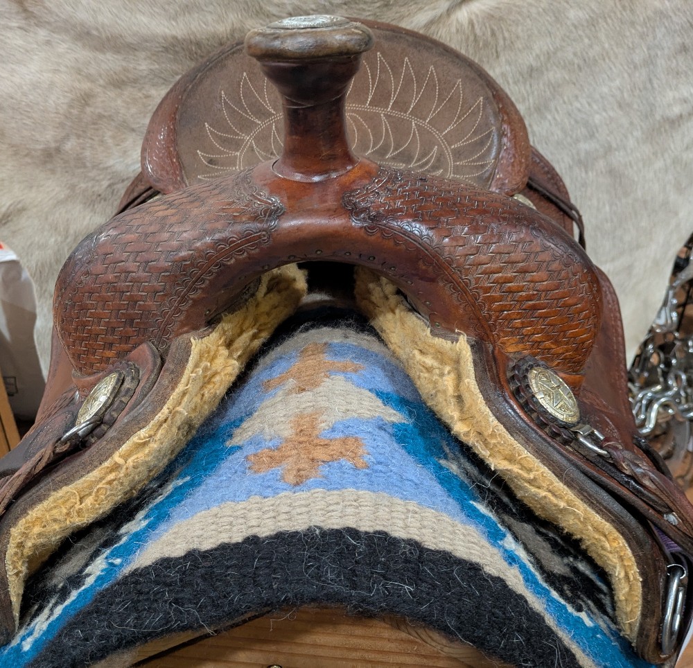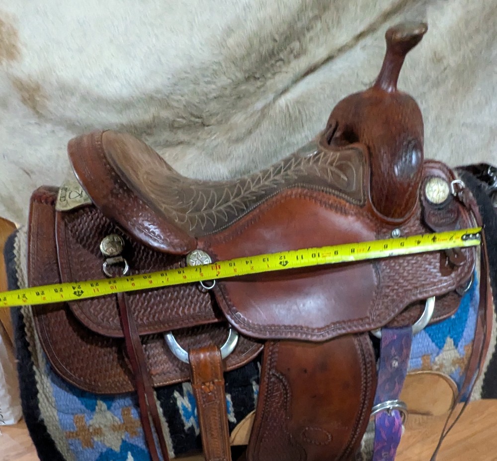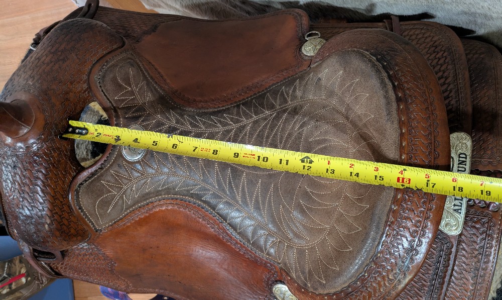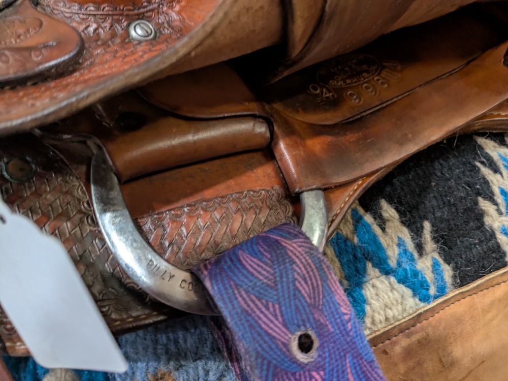 Nice value on this used Billy Cook All Around saddle! 16" #6500 is listed as a full quarter bar, please see pictures for condition and comparison measurements) it's a wide flat fitting saddle. This popular style is made to work, but has nice close contact feel and classic look to take you to the show pen! Western dressage, ranch, working equitation, trails? Come take a look!