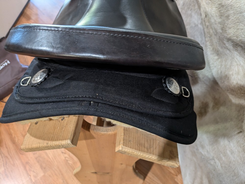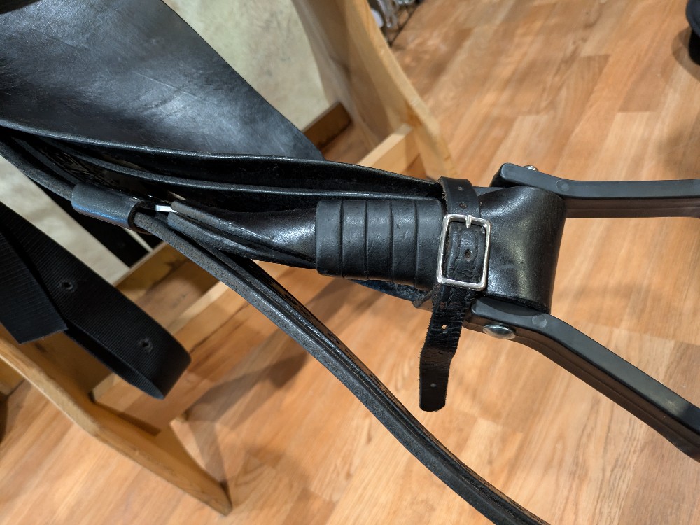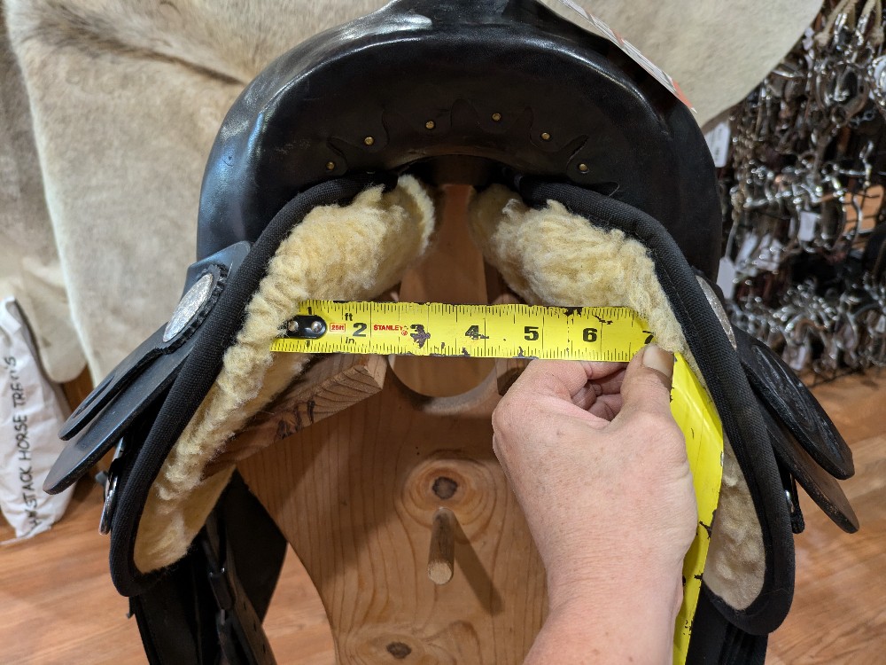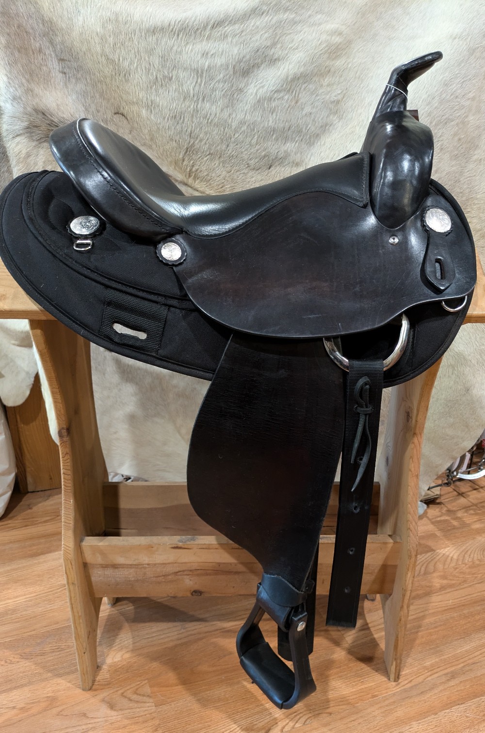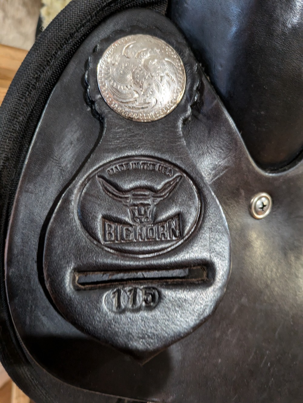 Nice, very gently used Bighorn Arabian tree #115. 15" seat, The owner had custom leather fenders made with Hamley twist, for perfect stirrup position. The original, unused,cordura fenders are also included. This saddle may fit other breeds who need shoulder room, without being too wide or too flat at the front of the tree. Ask us about matching Arab/small accessories available separately.