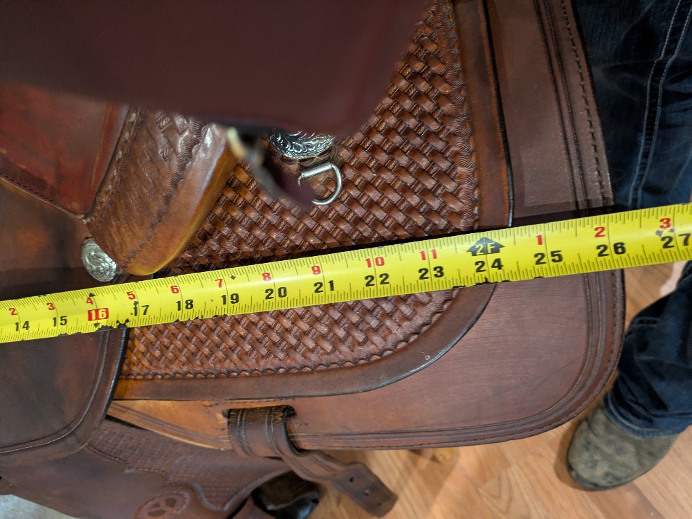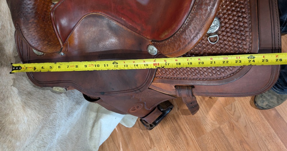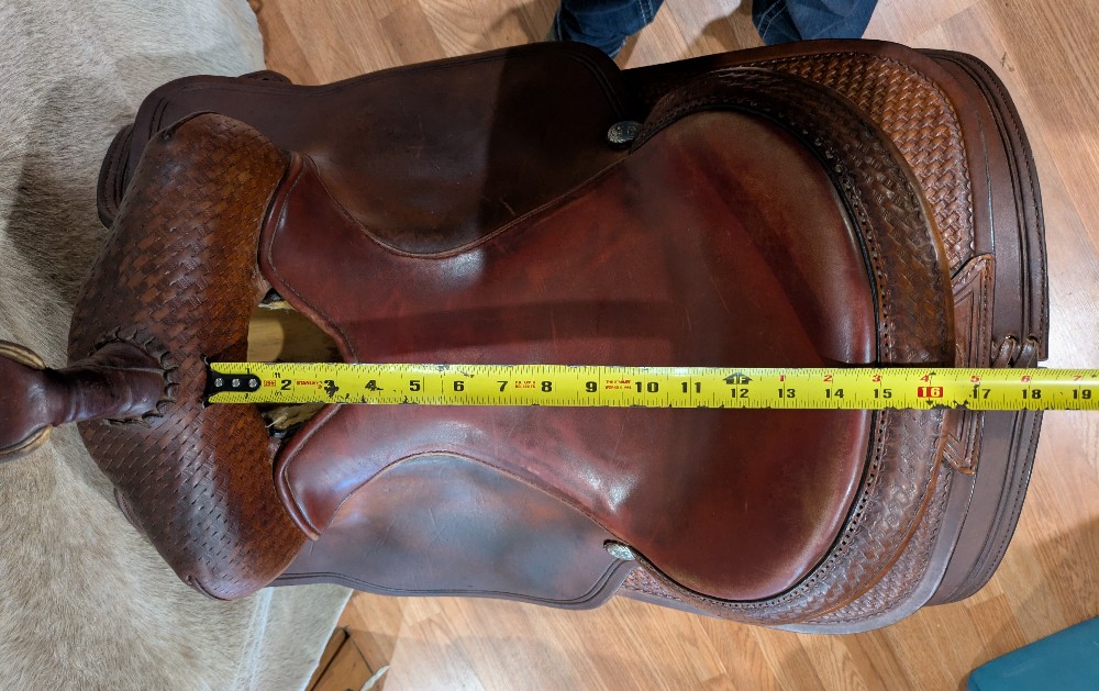15" seat, ralide/fiberglass tree wide estimated just by how it fits compared to their regular ralide tree. (Serial # is older than 2006, look-up tool.) Please take a look at the comparison measurements and feel free to ask questions prior to purchase.