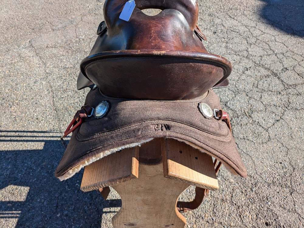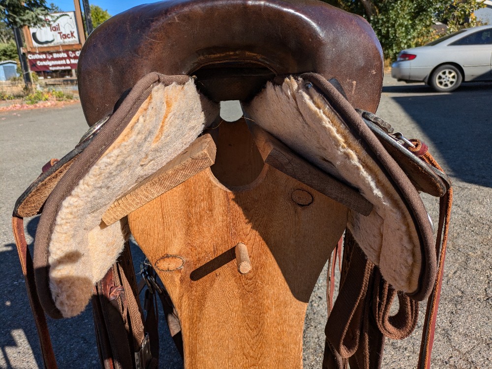 Just in! Nice used Bighorn #272 Slick seat trail saddle. 16" Brown with leather seat and cordura skirts. The classic slick seat feel with the weight of a light weight trail! Wide, fiberglass covered wood tree with a little flare at the front for shoulder room.