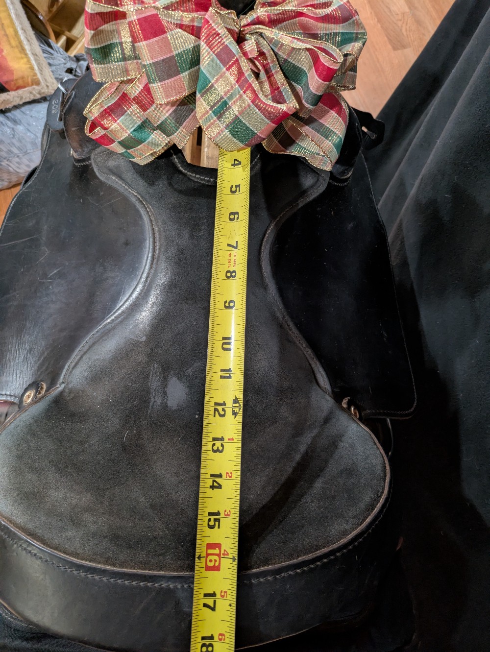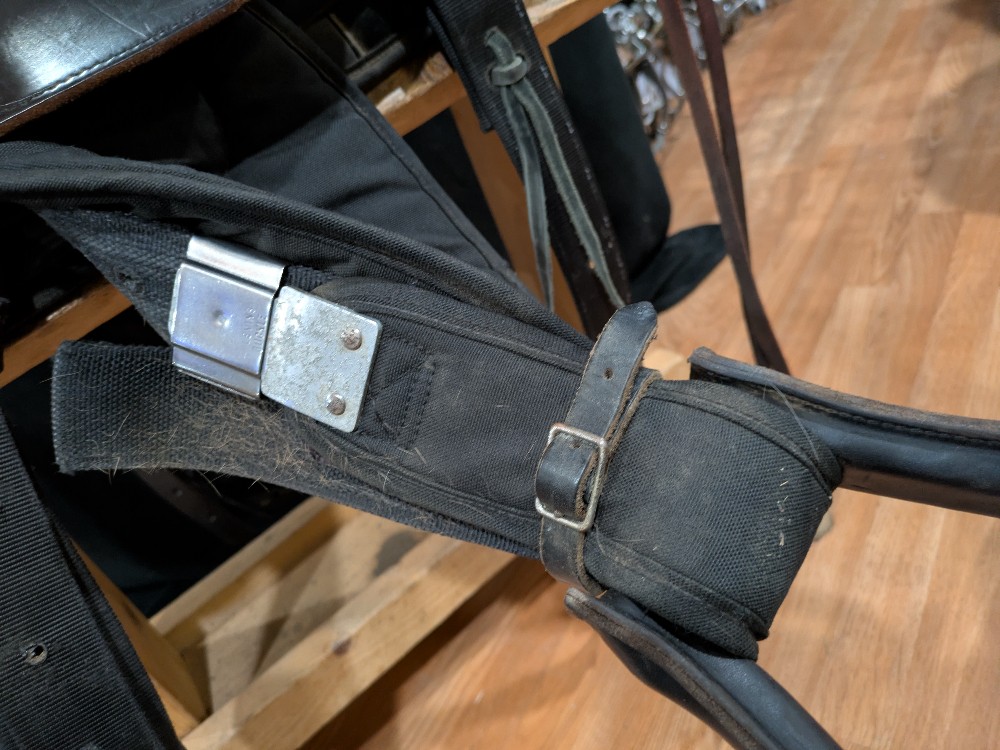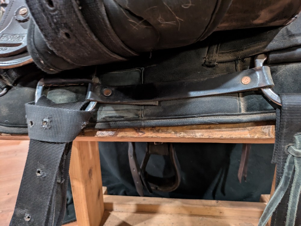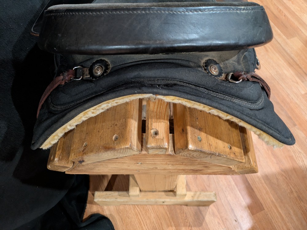 Save over half of new price! Nice used Bighorn Saddle with "hybrid" style to keep the weight down! Leather seat and seat jockey, Cordura fabric skirts. Weight approx 25# in this model. Tue "Roper has a wide solid wood tree that is sturdy doe light duty practice or breakaway, Heavy roping is NOT advised in a synthetic saddle. I like the fit of this tree for horses that benefit from shoulder flare to keep range of motion. Please see pictures for condition and comparison measurements and feel free to ask questions. 3 day trial available with in-person pickup. Sales final on shipped saddles