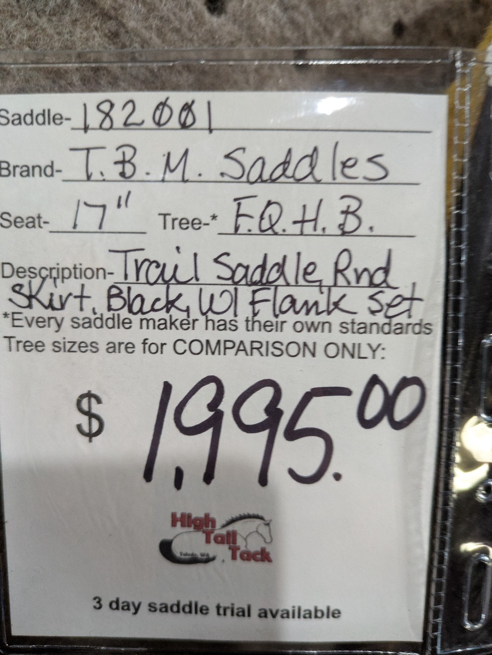 3 day trial from date of purchase available with in-person pickup, sales final on shipped saddles. Shipping is maximum $125 in continuous USA, shipping available worldwide by quote
