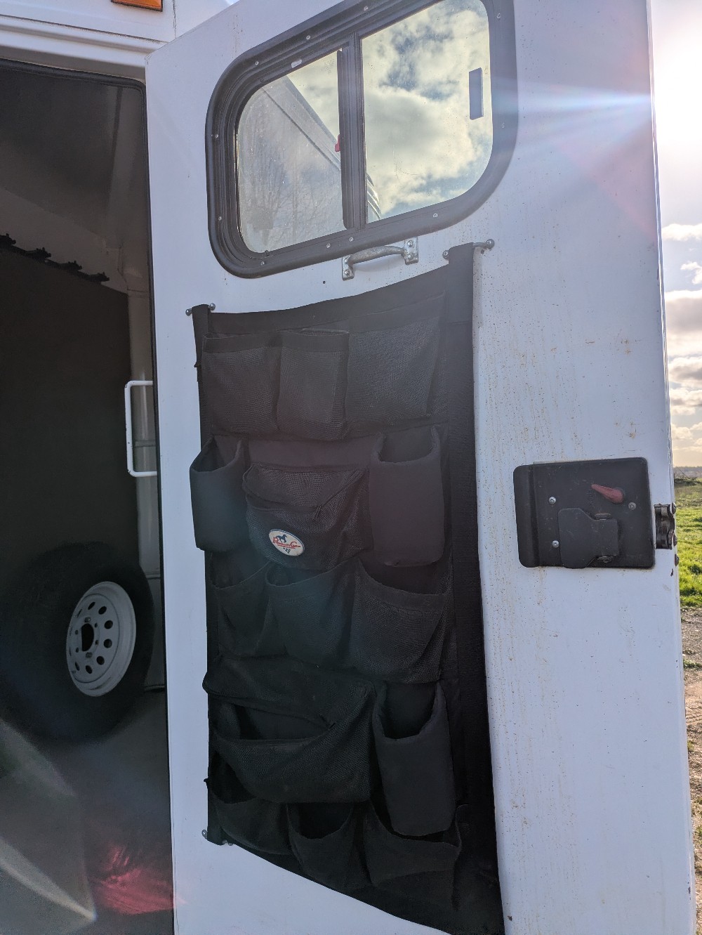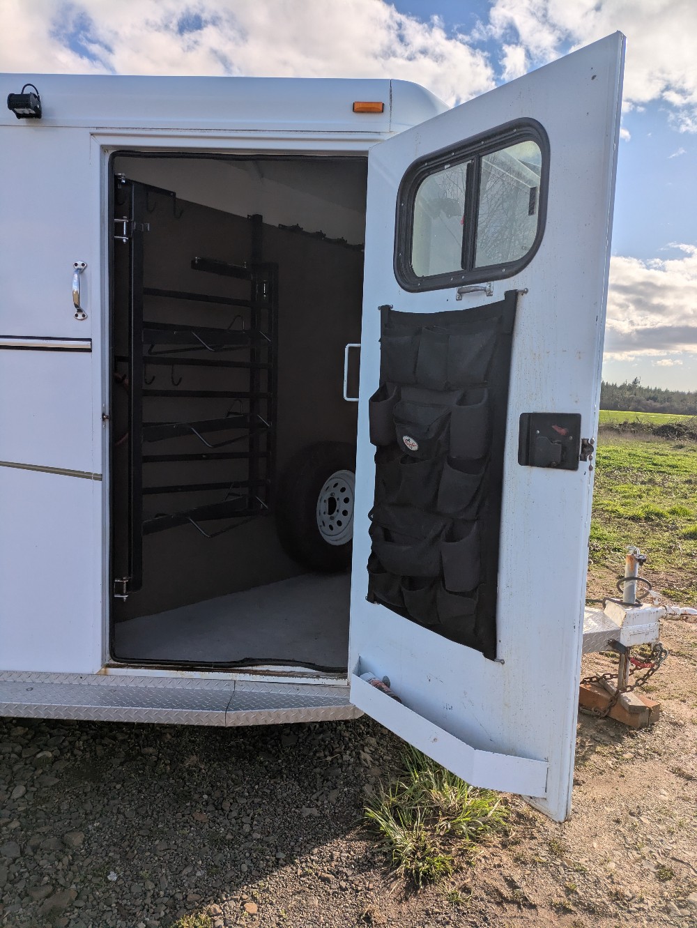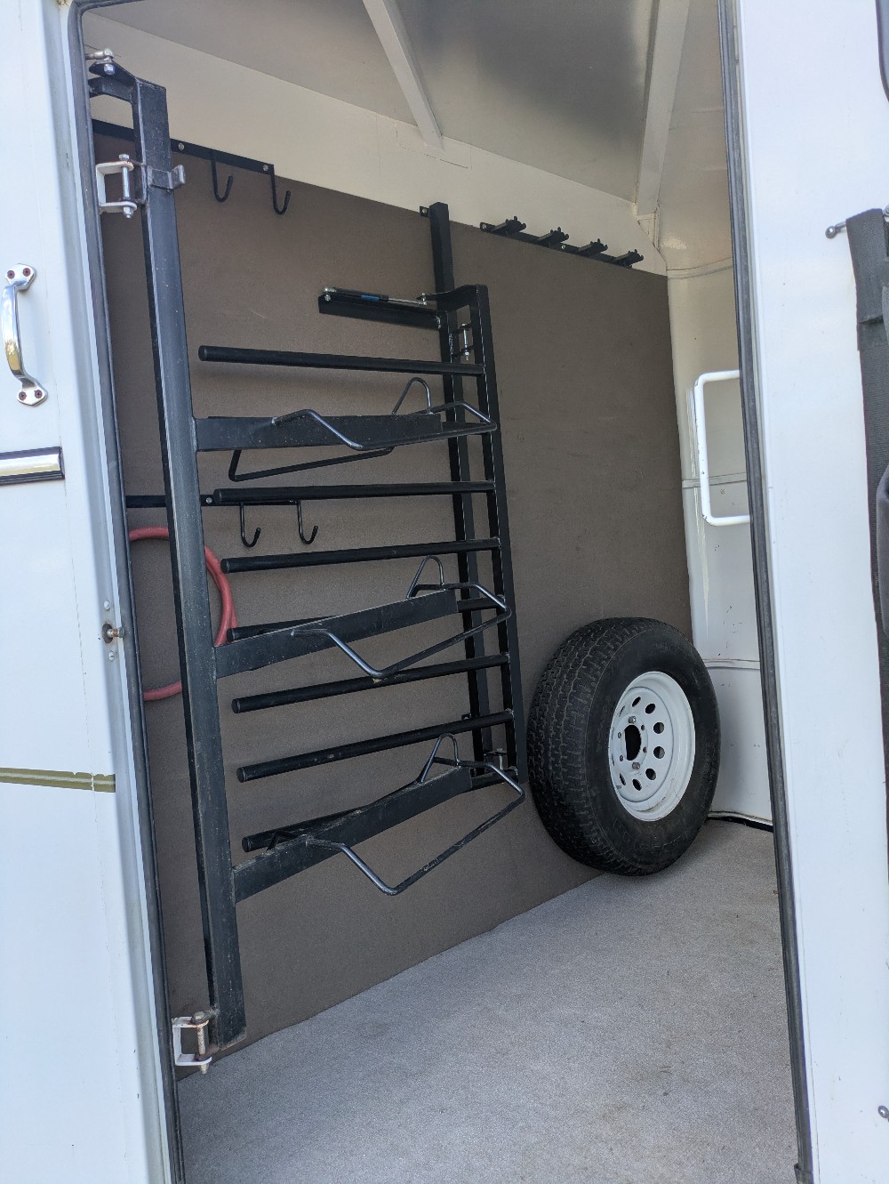 -Locking tack room, triple swinging saddle racks