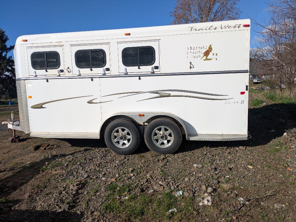2008 Trails West 3 horse slant load, bumper pull horse trailer! New on our Park N' Sell Lot @ High Tail Tack! This is a nice, straight trailer with lots of maintenance taken care of in the last few years! She's ready to roll for your 2026 riding season and beyond! Bonus, the owner of the trailer will include a back up camera and trailer camera for viewing your horses while you're hauling!